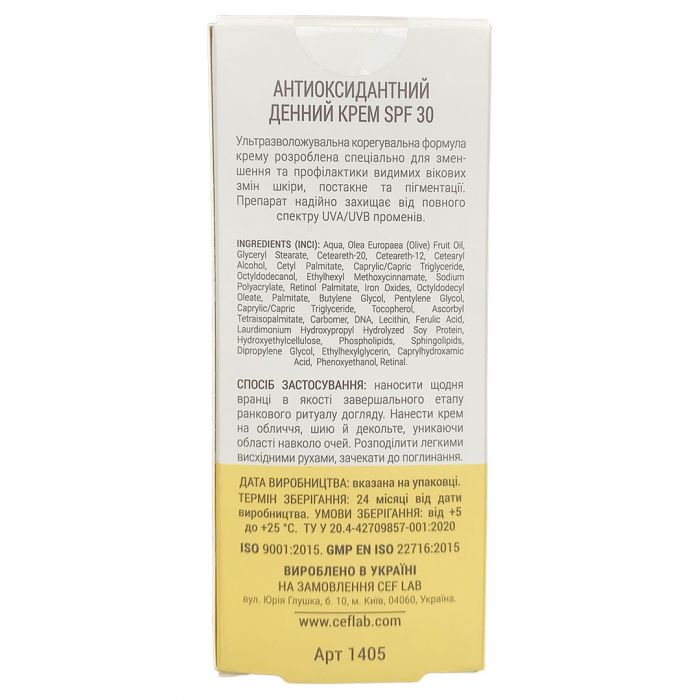 Ультразволожувальна корегувальна формула крему розроблена спеціально для зменшення та профілактики видимих вікових змін шкіри, постакне та пігментації. Препарат надійно захищає від повного спектру UVA/UVB променів, поліпшує її тон та текстуру, надає пружності та еластичності, бореться з вільними радикалами, поліпшує глікування й усуває видимі ознаки фотостаріння.