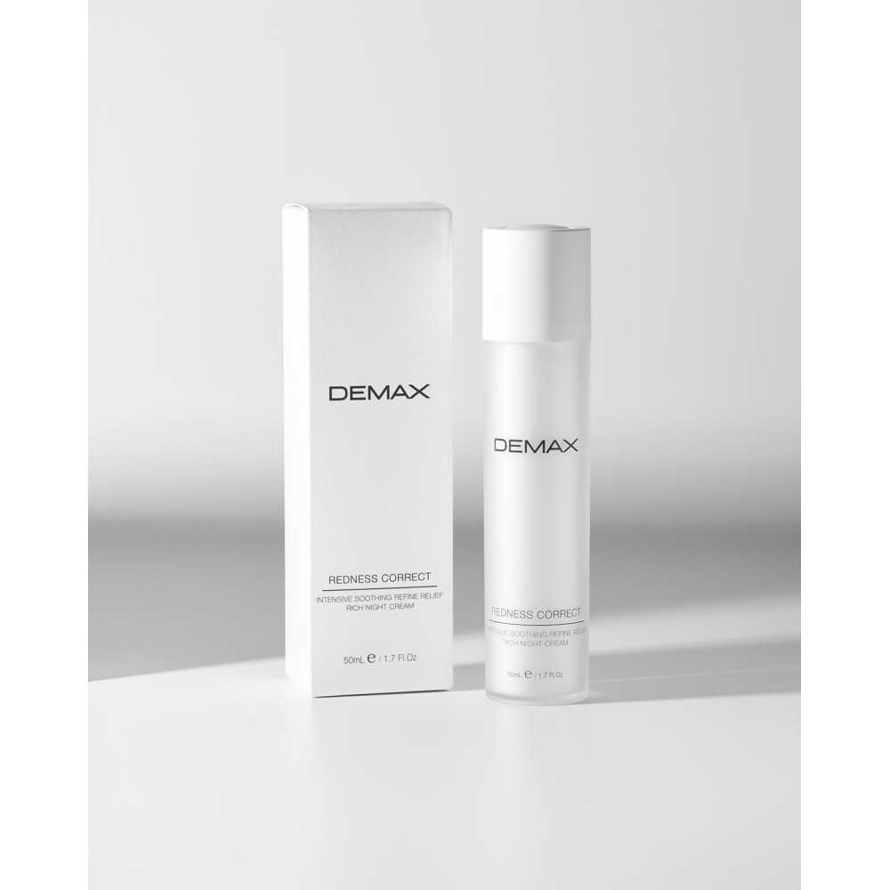Demax Anti-Couperose Anti-Redness Cream Rich Night Refine – цей крем, призначений для щоденного вечірнього догляду за чутливою та страждаючою від куперозу та почервоніння шкіри. Косметичний продукт бренду Demax чудово заспокоює таку шкіру, знімає почервоніння та прибирає всі неприємні відчуття. Крем, поки Ви спите, впливає на капіляри, зміцнюючи та ущільнюючи їх. Він добре зволожує, прискорює регенерацію та уповільнює процес раннього старіння клітин шкіри.