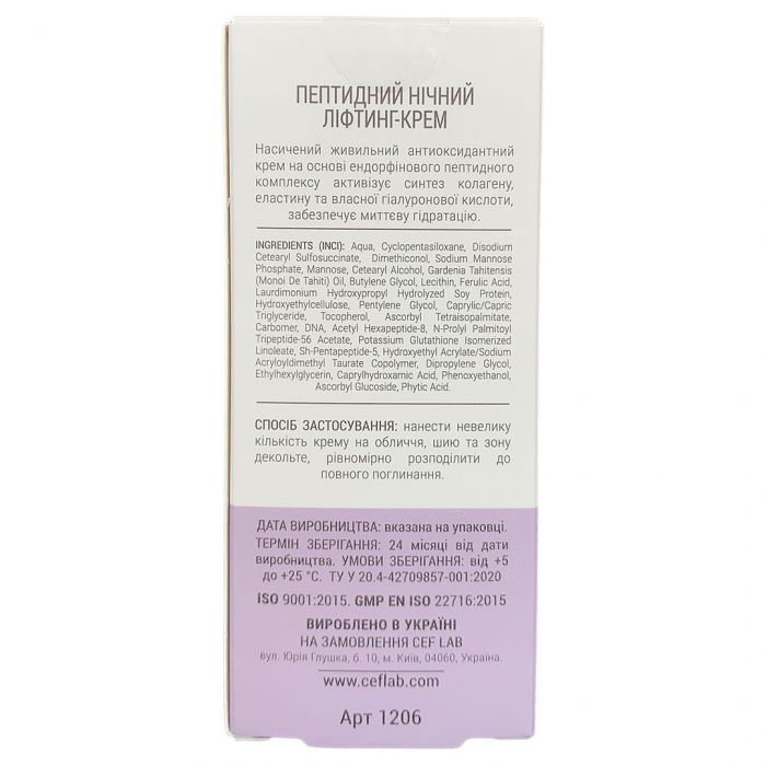 Опис Пептидний нічний ліфтинг-крем CEF Lab Renaissance Peptilift Night Cream