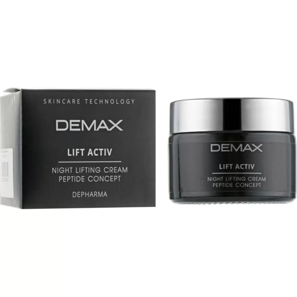 Demax Night Lifting Cream Peptide Concept – це дуже поживний пептидний крем, призначений для щоденного вечірнього догляду за шкірою з явними ознаками старіння. Він інтенсивно живить, зволожує та пом’якшує шкіру. Завдяки активним компонентам у складі, таким як, ліпопептид-комплекс, крем стимулює вироблення колагену, відновлює еластичність шкіри, надає омолоджуючий та ліфтинг-ефект, зменшує видимі зморшки та тонкі лінії. Продукт не лише бореться із віковими змінами, а й покращує захисні властивості шкіри. Має щільну текстуру і приємний аромат.